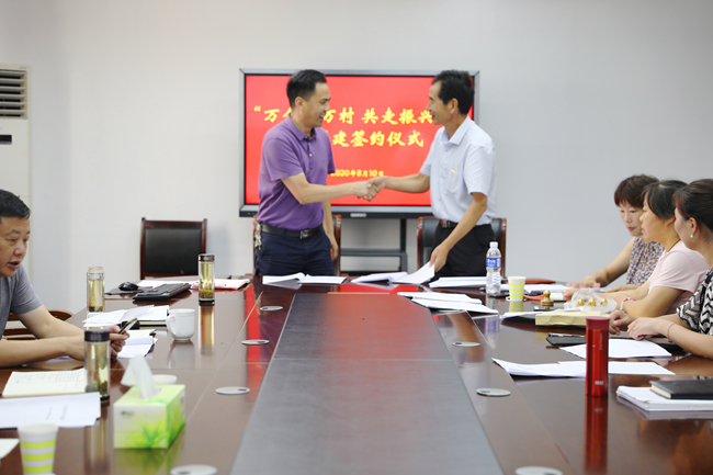 儀式上,分別與海頭鎮(zhèn)龍河村、龍南村、龍北村、大崗村和大官莊村5個村進行簽約。 (仲偉彬)