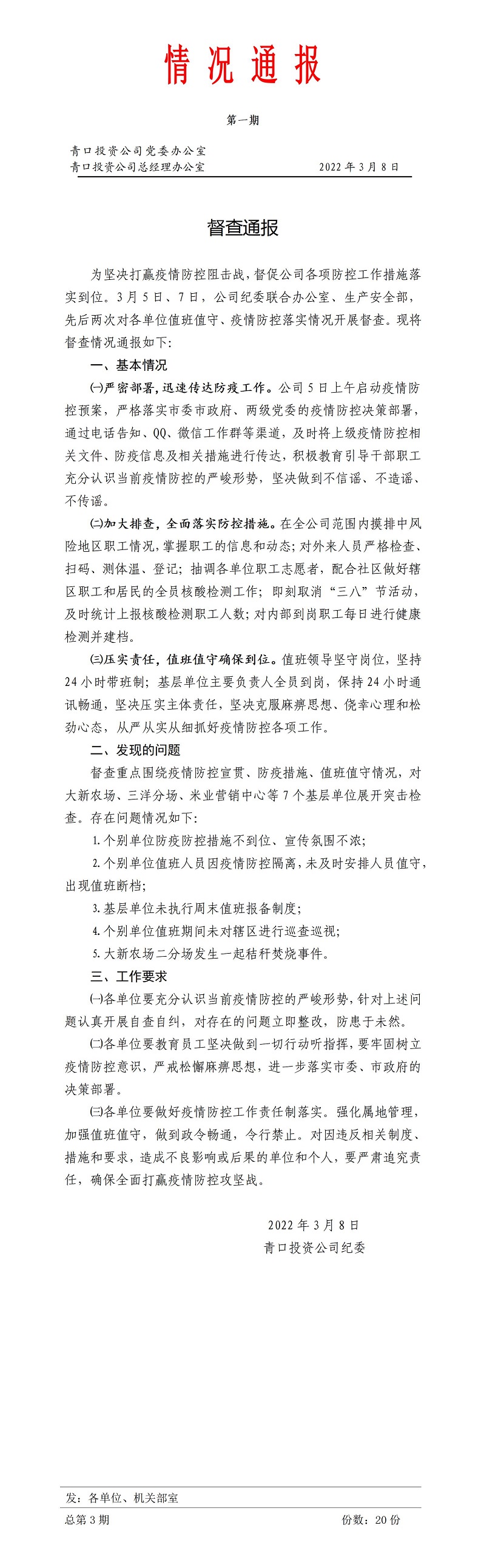 情況通報1期 疫情防控落實情況的督查通報