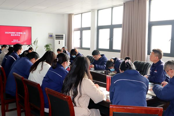 12月6日下午,公司召開2022年度部門及管理人員綜合考評會(huì)議,公司領(lǐng)導(dǎo)班子成員及全體管理人員參會(huì),會(huì)議由黨支部副書記袁忠主持。