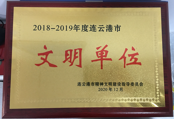 近日,連云港市精神文明建設(shè)指導(dǎo)委員會公布了2018-2019年度連云港市文明單位新命名名單,神特公司榜上有名,被評為“2018-2019年度連云港市文明單位”。