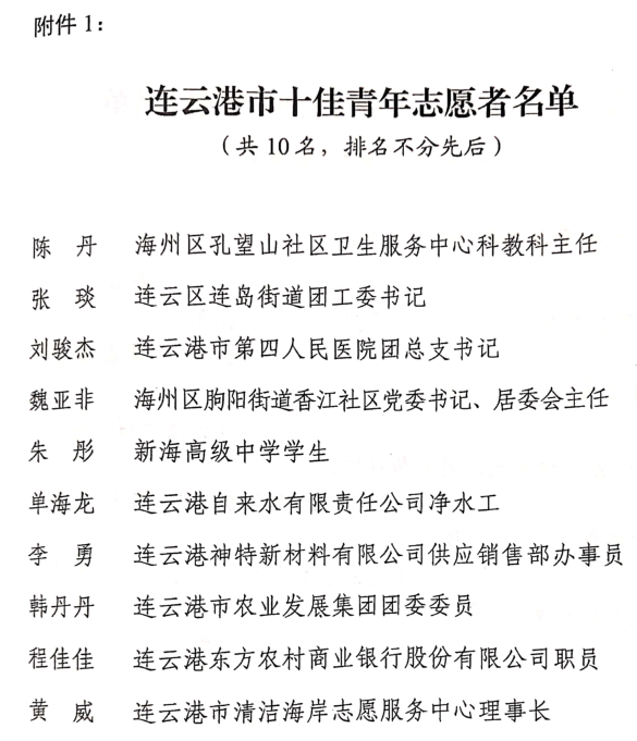 近日,公司員工李勇被共青團連云港市委、連云港市文明辦、連云港市志愿者協(xié)會授予“連云港市十佳青年志愿者”稱號。這是對其“無償獻血,大愛無疆”的肯定,也是對其一種激勵。