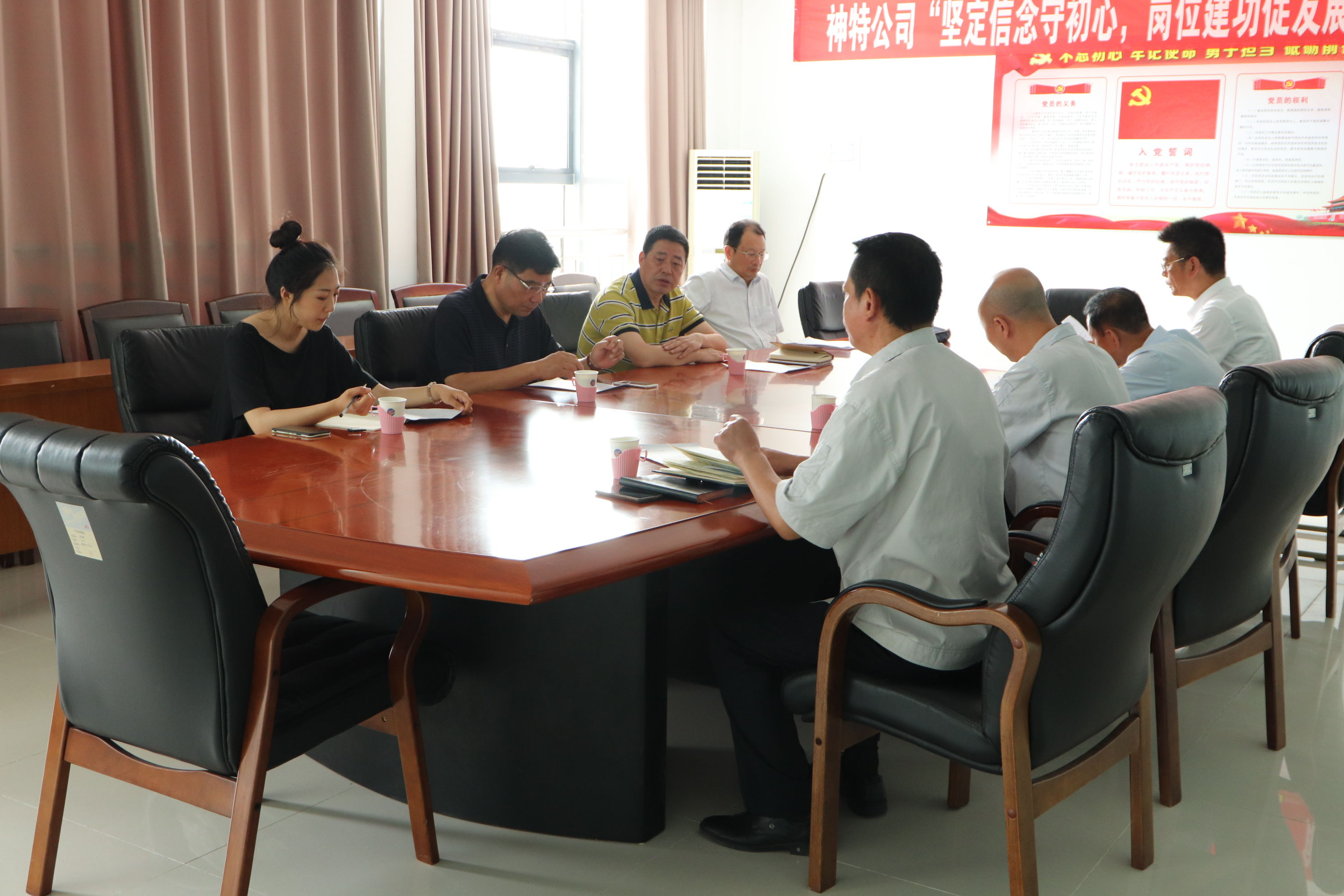 調研會上,副書記袁忠圍繞黨組織的領導作用、人財物保障、“書記項目”、陣地建設、離退休黨員教育管理專項整治、“七一”活動、“學習強國”、先進典型培育選樹、黨建特色工作等方面,就上半年黨建工作開展情況進行了匯報。黨支部書記鄒德兵、總經理韓立新就黨建工作與調研組成員交換了意見。江舜軍部長對于我公司上半年黨建工作給與肯定,體現四個特點,即“四個強化”有內容、“三組聯建”有新意、“三亮三掛”有特點、陣地建設有思路,針對下步工作,要求在凝心聚力、載體創新、典型選樹、文明創建上下功夫,持續深化黨建工作,不斷彰顯黨建實效,引領和推動企業經濟工作向穩向好開展。