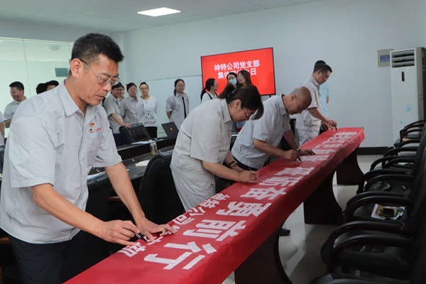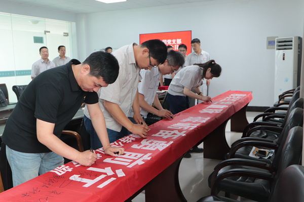 在七一來臨即將來臨之際,公司開展集體政治生日活動,組織全體黨員賡續紅色血脈,砥礪奮勇前行。活動中,與會黨員重溫入黨誓詞,回憶入黨初心,并在條幅上簽名,作出鄭重承諾。公司黨支部對5名優秀共產黨員進行表彰,激勵全體黨員學先進、作表率,以優秀的成績向建黨100周年華誕獻禮。