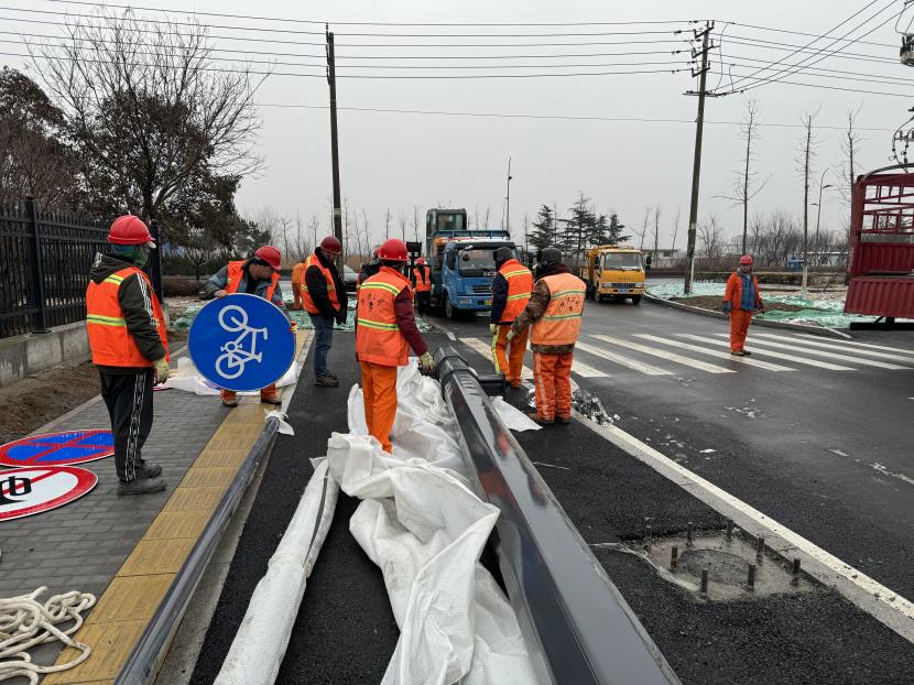 立足優質服務,確保維護管養及時高效。盛達市政分公司根據公司上級交辦的重點工作,以及一季度觀摩會活動線路保障等工作,積極完善轄區主次干道、公園、廣場的市政設施,認真履職盡責,保障市政設施完善,做好下水管網運轉通暢,巡查人員冒雨堅持道路巡查,對轄區下水管網進行摸底排查,及時清理疏通堵點,對積水嚴重路段設立警示標志,并利用抽水泵等重型設備疏導積水,確保轄區不出現大面積積水,保障了轄區人民群眾的出行安全,一季度順利完成轄區井篦、井蓋更換安裝合計約200套;另外,友誼路交黃海大道、興業路交黃海大道、平山路交黃海大道雨水管網改造工程正在有序開展中。