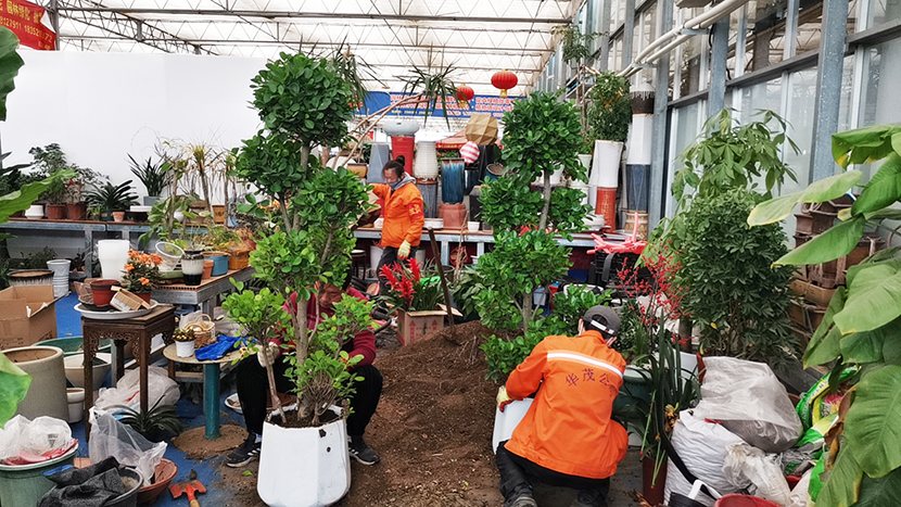 2月24日,走進位于振興花卉城的華茂園藝項目部,室外冰天雪地,室內忙碌的身影不斷穿梭……有的在配土上盆、有的在修剪養護、有的在擦洗裝飾,員工們分工協作、團結一心、有條不紊地進行花卉綠植的入盆及制作,開足馬力增效益。