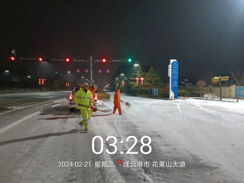 ? ? 2月20日晚,港城迎來了新一輪大范圍降雪,大部分地區(qū)出現(xiàn)凍雨伴冰粒天氣。為保障群眾出行安全,益豐園林分公司以雪為令,副經(jīng)理孫杰帶領徐明磊、樊如軍、朱文健3名黨員同志迅速反應,快速出擊,身披“橘”甲,浴“雪”奮戰(zhàn)。傍晚6點開始,從新光路涵洞區(qū)域到花果山大道東側(cè),先鋒大橋至黃海大道區(qū)域,再到東方續(xù)道至大港東路路段,4名同志不分晝夜,連續(xù)奮戰(zhàn),不間斷巡查,發(fā)現(xiàn)積雪立即鏟除,及時消除道路安全隱患,共計撒布融雪劑8余噸,積雪清理成效明顯,為周邊群眾出行開辟出一條“溫暖平安路”。