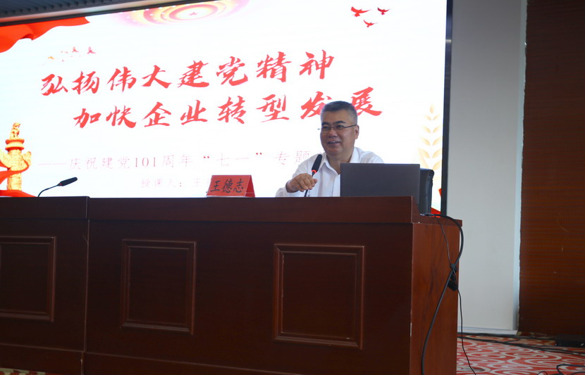 公司黨委書記、董事長、總經(jīng)理王德志為與會黨員上“七·一”專題黨課。他生動地闡述了自建黨以來,中國共產黨一代又一代的領導人帶領中國人民謀幸福的偉大征程。王德志指出2019至2021三年間,公司業(yè)績實現(xiàn)“三連增”,順利完成“一減半、兩年扭虧、三年新高”的發(fā)展目標。