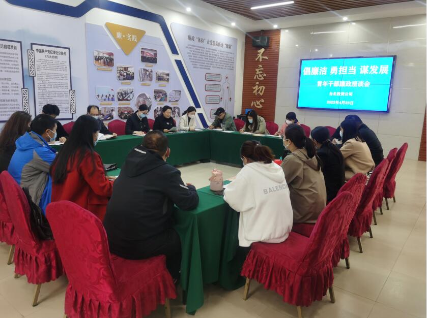 在第103個“五四”青年節來臨之際,4月28日,公司團委聯合紀委組織召開“倡廉潔、勇擔當、謀發展”青年員工廉政座談會。面對企業發展的巨大壓力,需要青年員工在工作中發揮“生力軍”作用,勇擔重任,為企業發展護航亮劍,同時青年職工也要筑牢拒腐防變的思想防線,扣好廉潔做事的“第一粒扣子”。