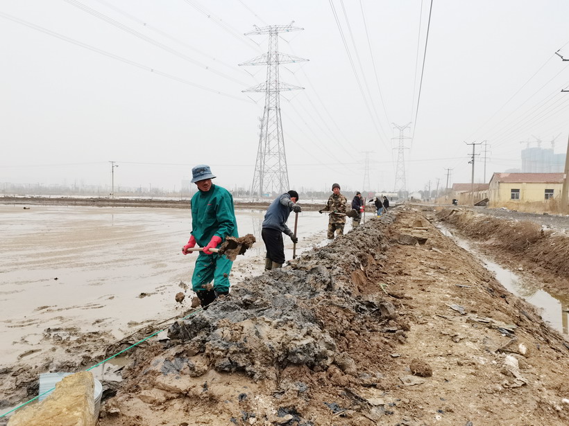 近日,迎著初春的風走進昌圩班組,在印有醒目“開局就是決戰,起步就是沖刺”的橫幅下,退休黨員朱春年正帶領職工撩溝做堰,更換結晶池塑料布等。兩鬢斑白的朱組長士氣毫不減當年,一邊忙一邊說:“昌圩結晶池因灘工撂荒較嚴重,冬準工程量大,為了能完成公司冬準計劃,我們把海濱、程圩職工都抽調過來了,過年都在干活,目前這邊1000畝結晶池已經完成,春節期間灌了一部分,現在天時好,我們得抓緊時間,早灌池,早落鹽!你們自己轉轉、看看吧,我實在太忙了····”。