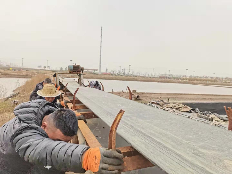 面對當下連云港堿廠急需原料鹽的情況,臺北原鹽銷售迎來了利好時機。為了快速走鹽,搶抓有利天時,3月29日,清晨六點,翔立鐵軍已經準備齊備奔赴大八組原鹽集運現場搶架皮帶機“過河龍”。