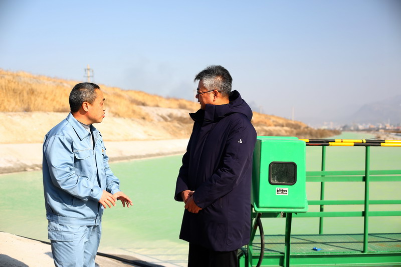 針對鈣液原料水環(huán)保參數(shù)超標等問題,董事長王德志一行現(xiàn)場勘察堿業(yè)公司氨堿上清液,堿業(yè)公司渣場管理處主任盧全才等領導詳細介紹近期堿廠的環(huán)保整改措施,首先是進一步做好酸堿平衡,確保原料水PH值堿度指標不超標,其次是降低氨氮濃度,確保不超標。在此基礎上,堿業(yè)公司在氨堿上清液送水通道安裝水質(zhì)在線監(jiān)測設備,確保及時發(fā)現(xiàn)異常,做到第一時間處置。
