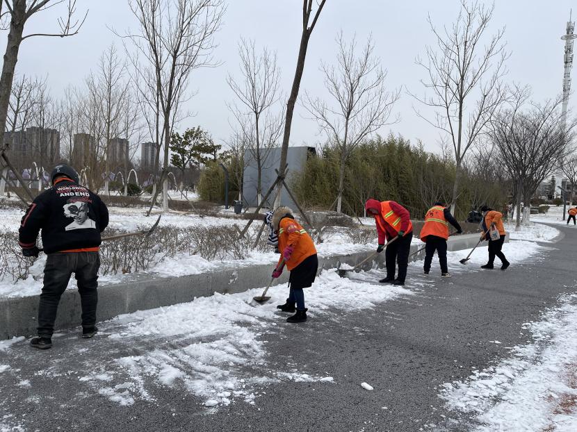? ? 此次鏟冰除雪行動仍在進行,鏟的是責任,暖的是人心。經(jīng)過志愿者的共同努力,園內的積雪情況得到有效緩解。一條條整潔的道路給群眾送去的不僅是方便和安全,更是一份溫暖和正能量,志愿精神讓這份溫暖在大雪中不斷蔓延。