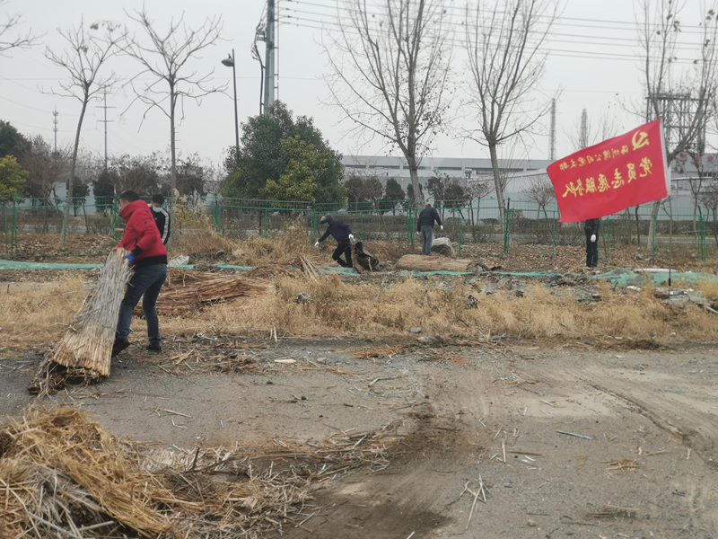 活動現場,鮮紅的黨旗迎風飄揚,支部黨員、職工手拿鐵锨、鐮刀、掃帚等工具,對場地上的垃圾、雜物進行了清理。特別是經過風吹日曬的生活垃圾,散發出陣陣酸臭味。突擊隊員們分工協作,不怕臟,不怕累,干勁十足,經過三個多小時的辛勤勞動,場地環境有了很大的改善。