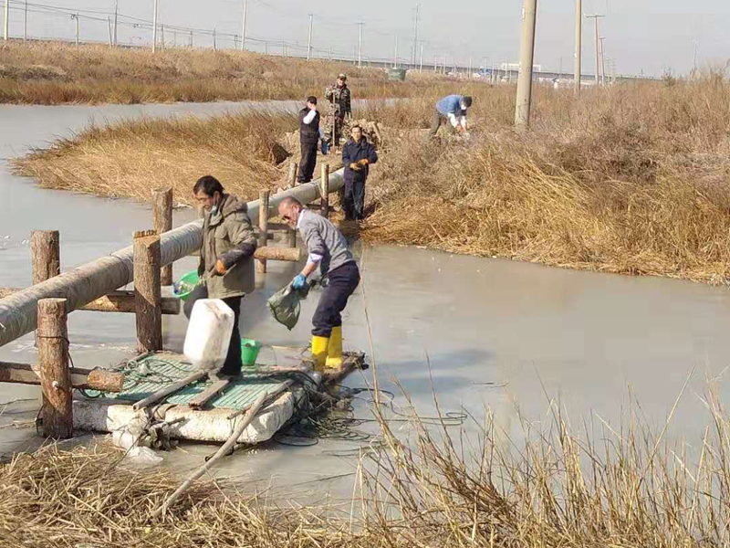 方案是拿出來(lái)了,但苛刻的現(xiàn)場(chǎng)環(huán)境、嚴(yán)峻的施工條件像冬季的陰霾再度籠罩在大家心頭!河對(duì)岸無(wú)交通橋梁人員無(wú)法直達(dá)對(duì)面,利用船只過(guò)河又面臨著河面結(jié)冰。以往這種距離的過(guò)河都是采用PE管(質(zhì)地柔軟彎曲性能優(yōu)越),但購(gòu)買(mǎi)PE管道的成本太高。玻璃鋼管道本來(lái)就比較脆弱易碎,更何況是三節(jié)連接在一起長(zhǎng)達(dá)36米的過(guò)河管道,這在鹽場(chǎng)管道施工史上還沒(méi)有先例。
