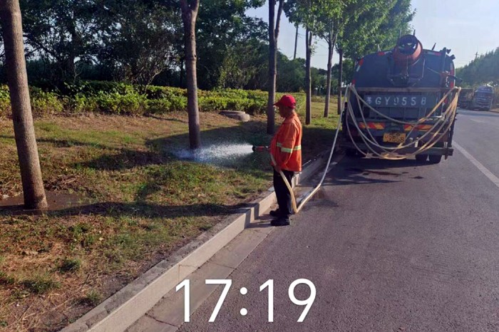 多舉措,全力抗旱保苗。該分公司二個班組,以科學方式進行澆灌作業,避開高溫時段澆水灼傷綠植根系。傍晚采用“人歇機不歇”的方式,對新栽植苗木、受旱較嚴重的苗木優先、多次澆灌,做到澆足澆透澆勻。對于喬木行道樹、綠化帶較密的區域,工人們采取2到3人一組徒手拖拽膠皮水管挨棵澆灌,多種形式相結合的措施,對園區綠地、綠化帶進行循環澆水。力爭做到抗旱不停步,澆水無死角,確保綠化苗木安全度夏。